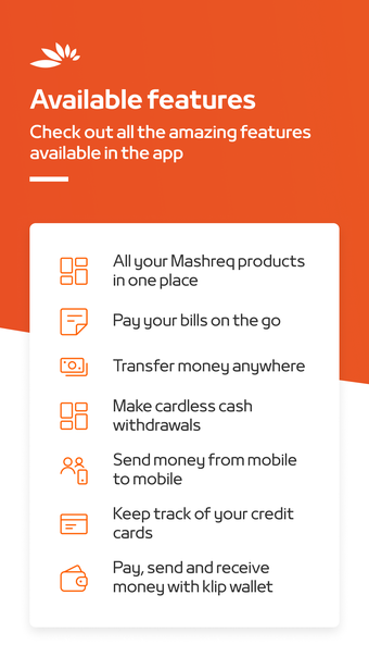 Een volledige versie-app voor iPhone, door Mashreq Bank PSC.